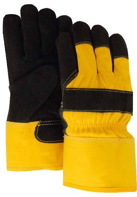 YELLOW AND BLACK SPLIT COWHIDE LEATHER GLOVE WITH PILE LINING AND SAFETY CUFF, SIZE XL
