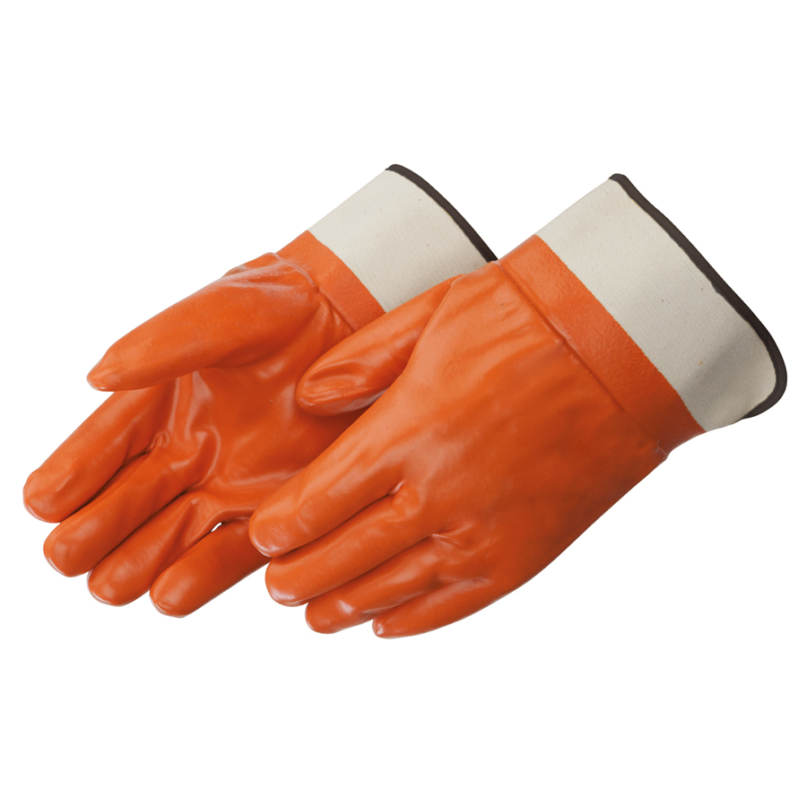 FOAM INSULATED SMOOTH ORANGE PVC GLOVE WITH SAFETY CUFF, SIZE LARGE