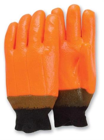 FLUORESCENT ORANGE SMOOTH PVC GLOVE WITH FOAM LINER & KNIT WRIST, SIZE LARGE ONLY
