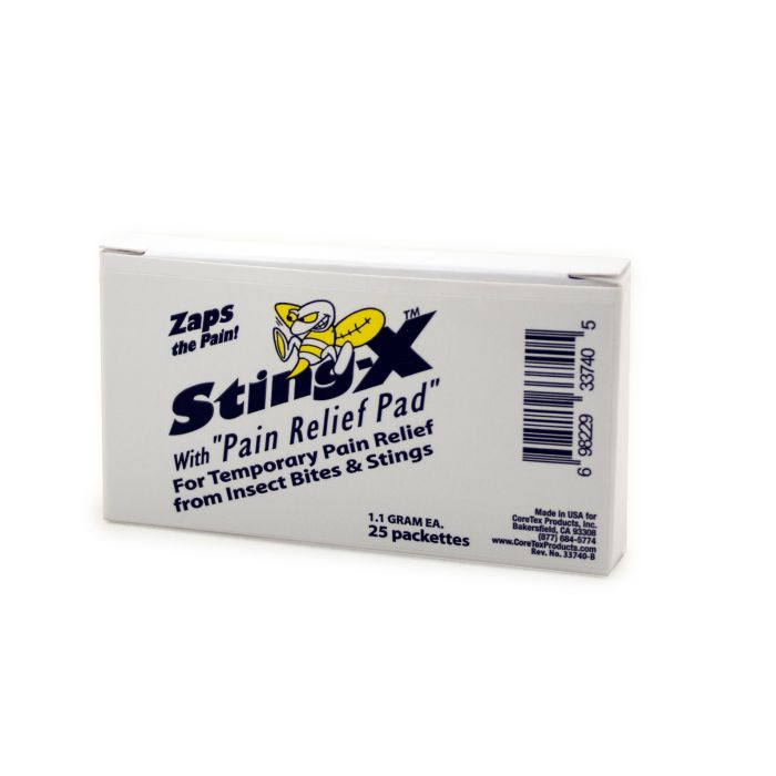 Sting X Pain Relief Pad, Has the most effective pain reliever active ingredient available: Benzocaine, Perfect size for first aid kits, 25 PADS PER BOX, 8-BOXES PER CASE