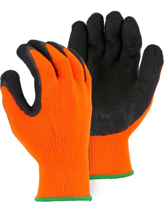 POLAR PENGUIN INSULATED KNIT GLOVE IN ORANGE WITH LATEX PALM COATING, SIZE XL