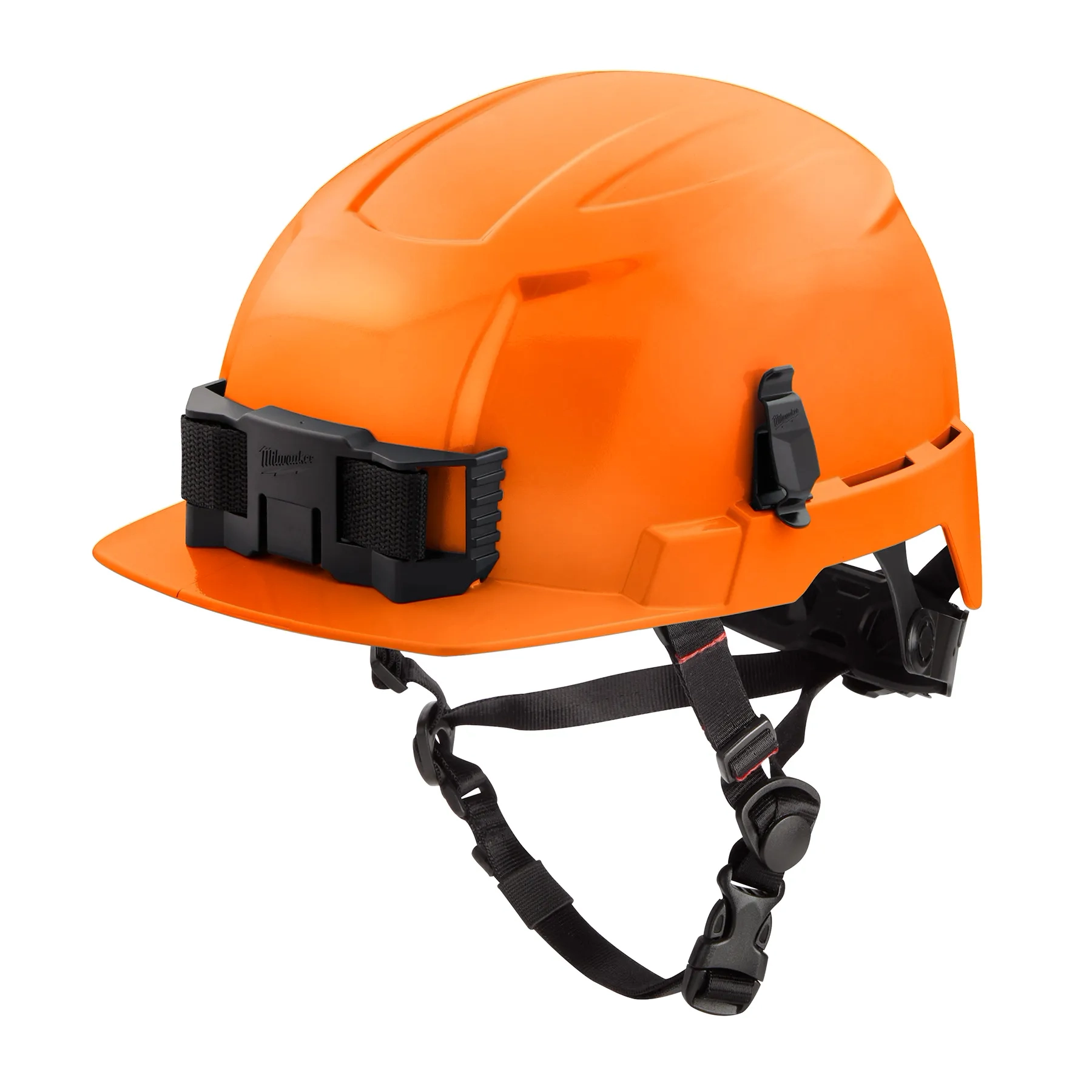 BOLT™ Orange Front Brim Safety Helmet (USA) - Type 2, Class E, Includes Headlamp mount, and Marker clip, padded ratchet suspension, and five point adjustable chin strap.