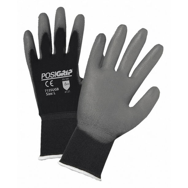 BLACK NYLON GLOVE WITH PREMIUM GRAY PU PALM COATING, SIZE LARGE
