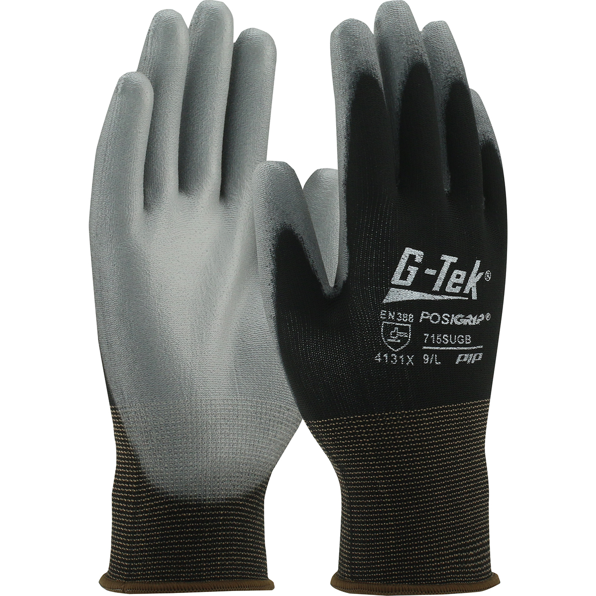 BLACK NYLON GLOVE WITH PREMIUM GRAY PU PALM COATING, SIZE MEDIUM
