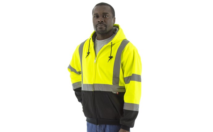 HIGH VISIBILITY LIME YELLOW HOODED SWEATSHIRT WITH TEFLON® FABRIC PROTECTOR, ANSI CLASS 3, SIZE LARGE