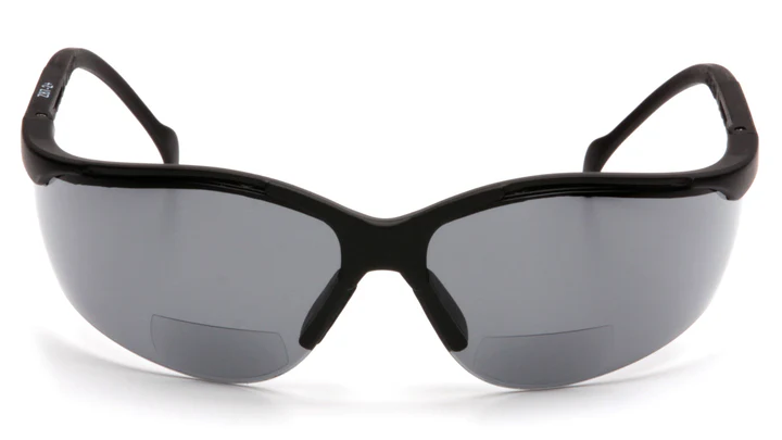 VENTURE II GRAY LENS SAFETY GLASSES WITH 2.5 DIOPTER AND ADJUSTABLE TEMPLES, 6-PAIR PER BOX